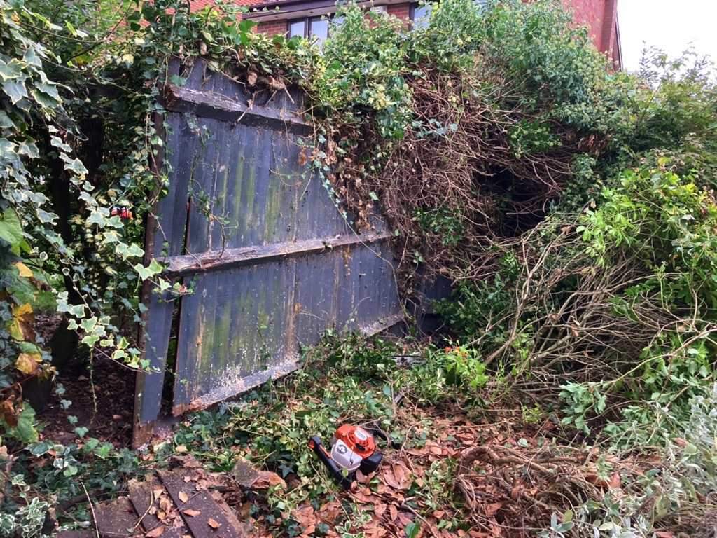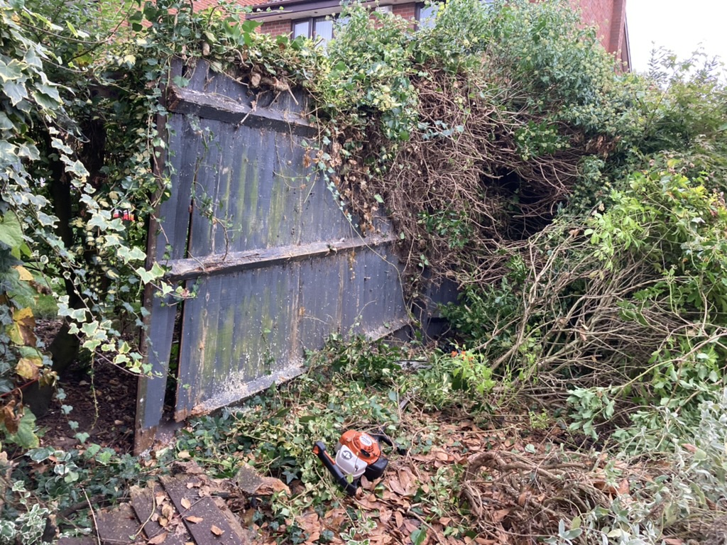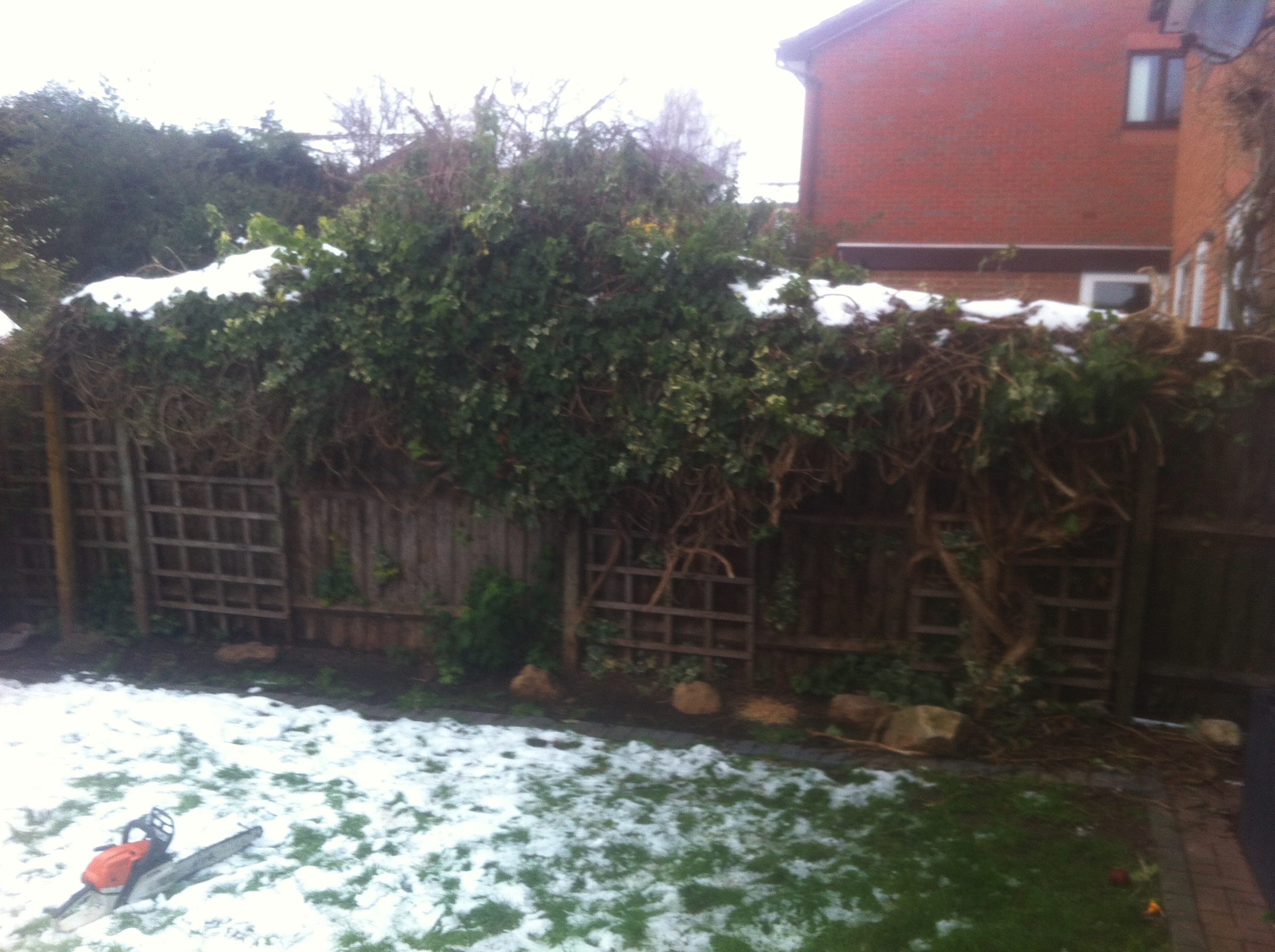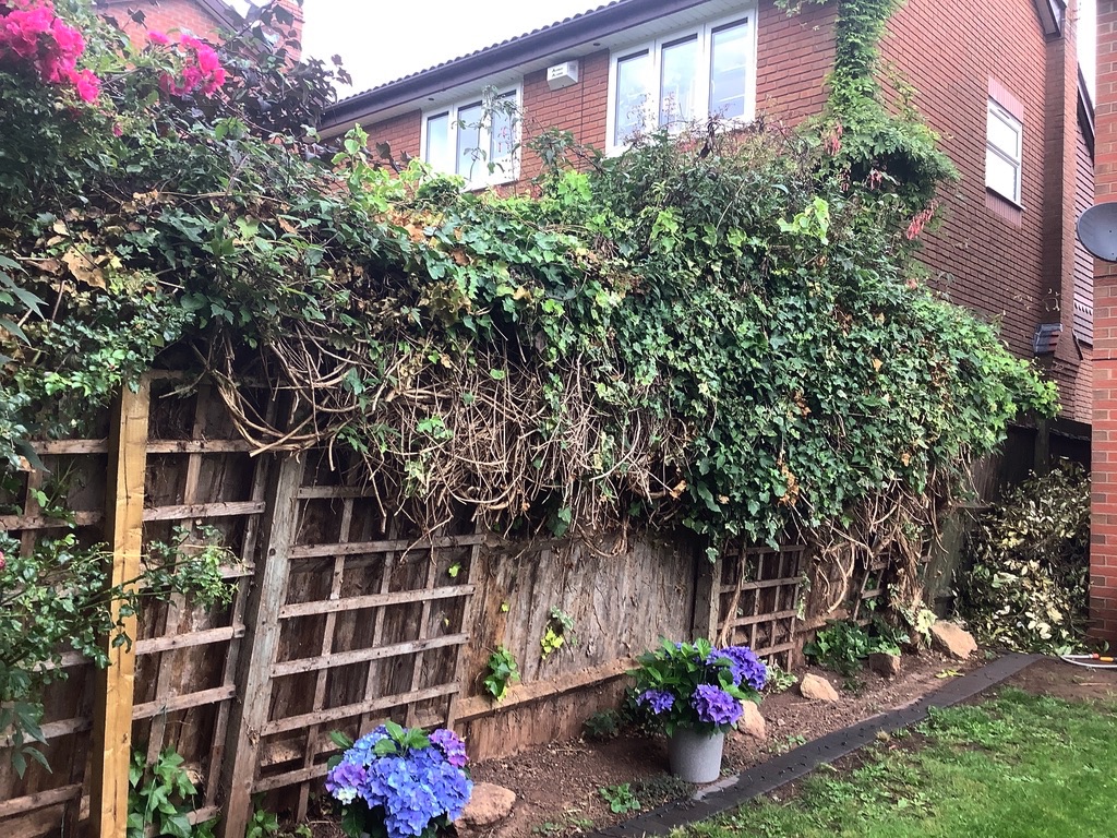The ivy-clad fence was in a poor state but new posts and panels brought the garden back into shape.