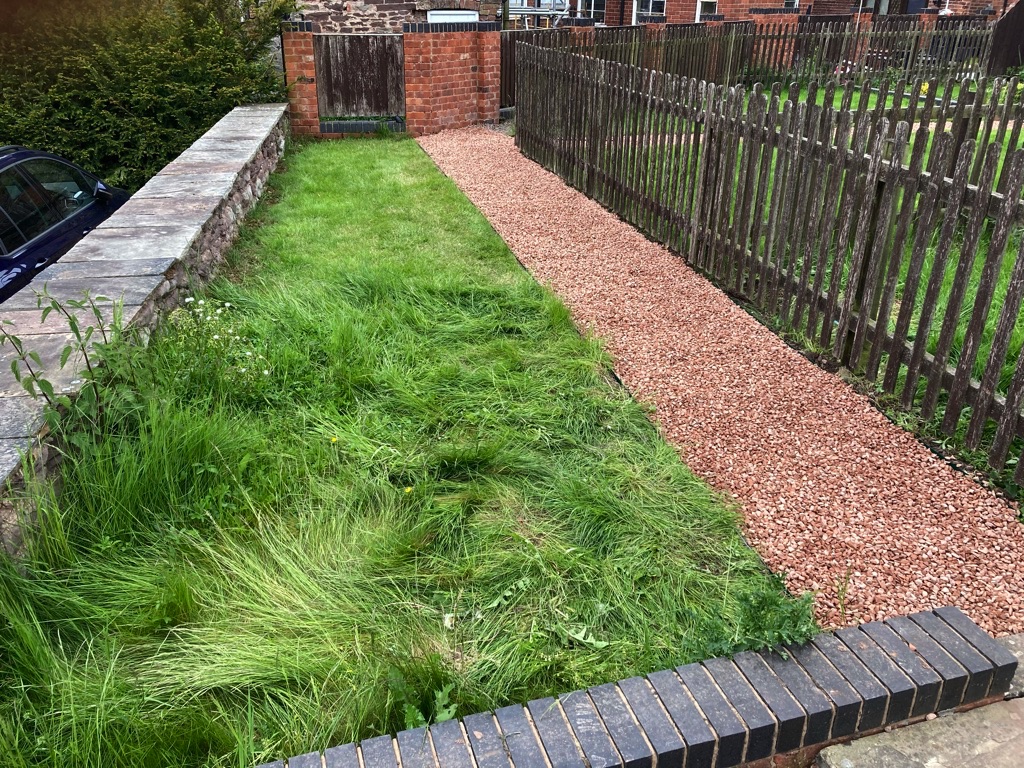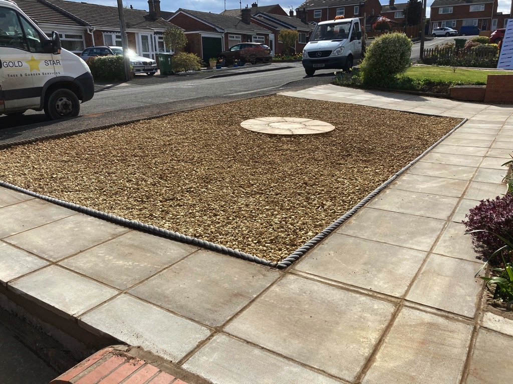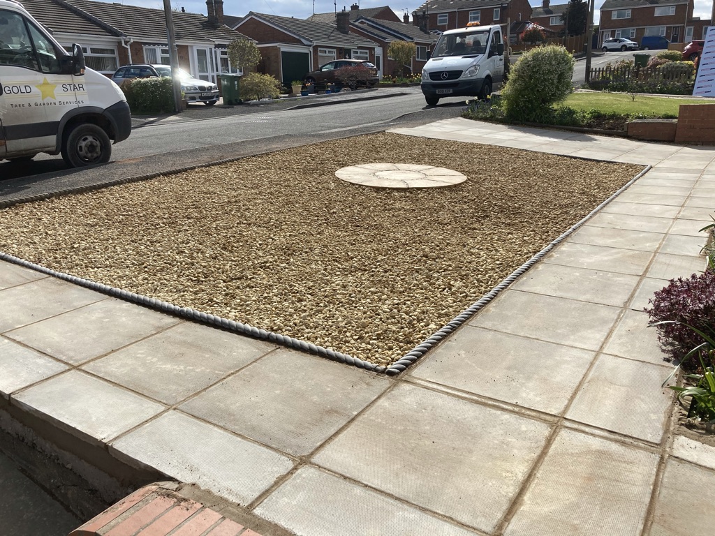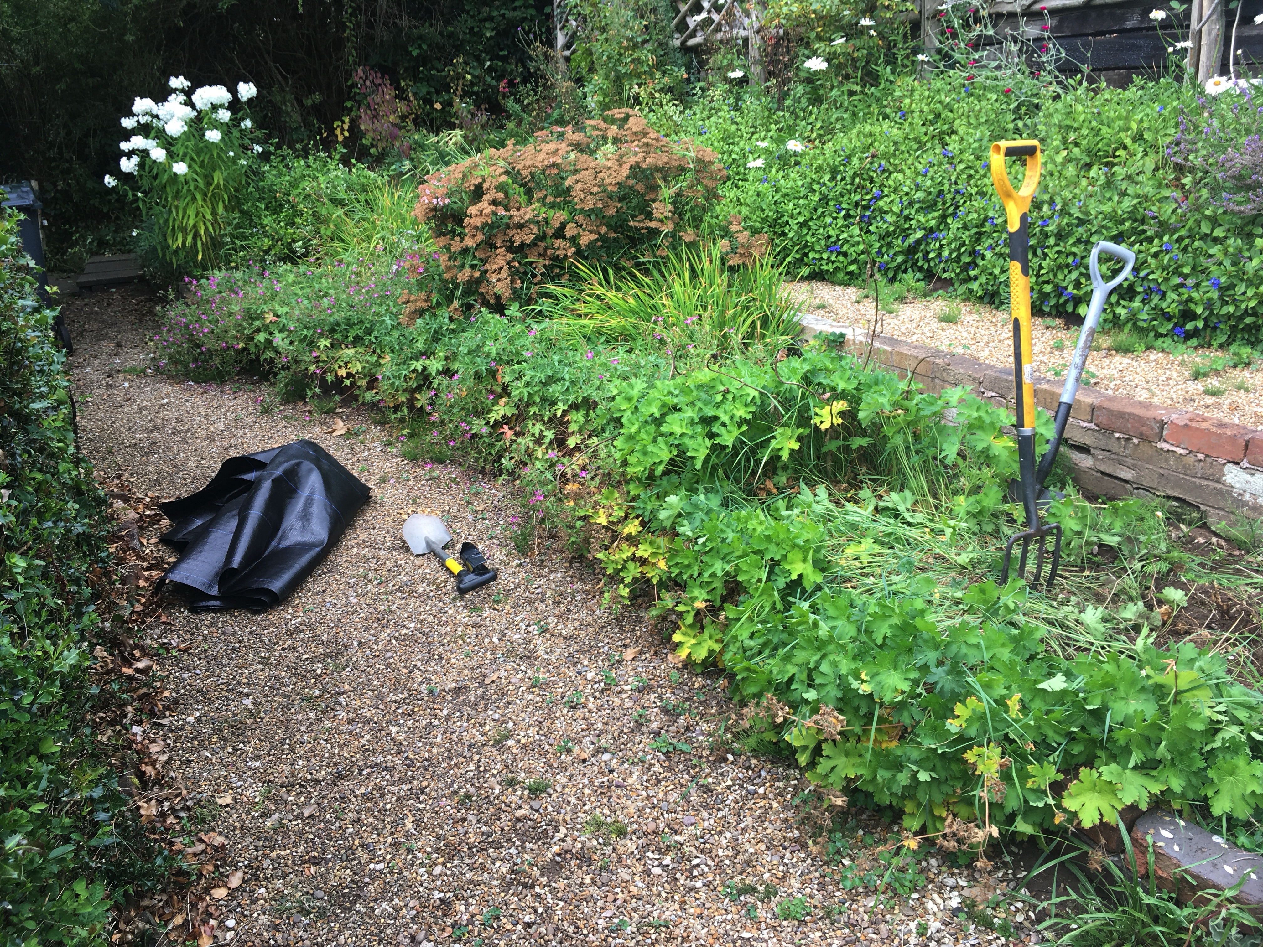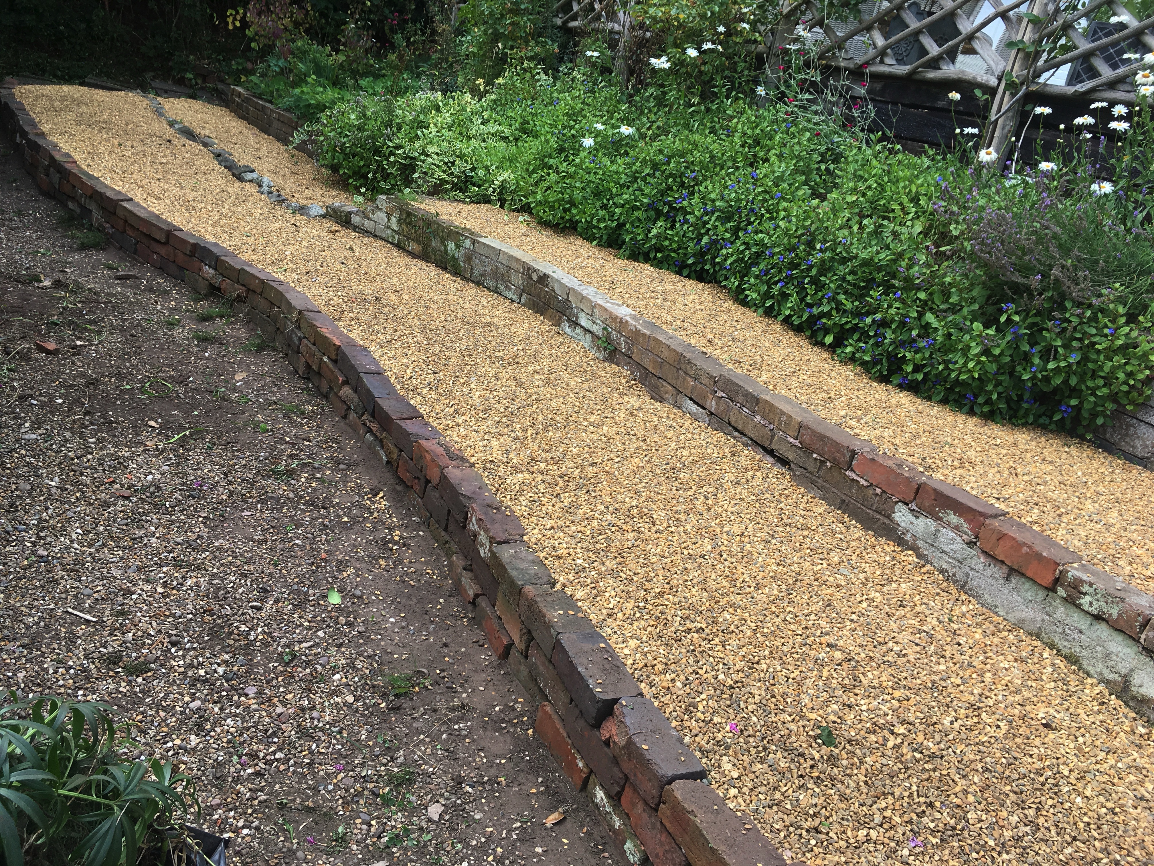 A simple gravel replacement to an overgrown and labour intensive bed, ready for pots and ease of maintenance
