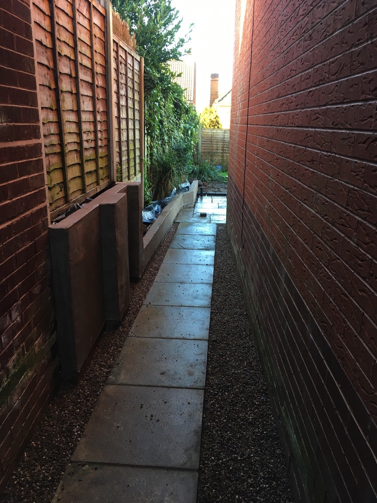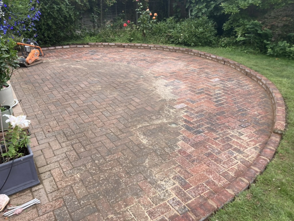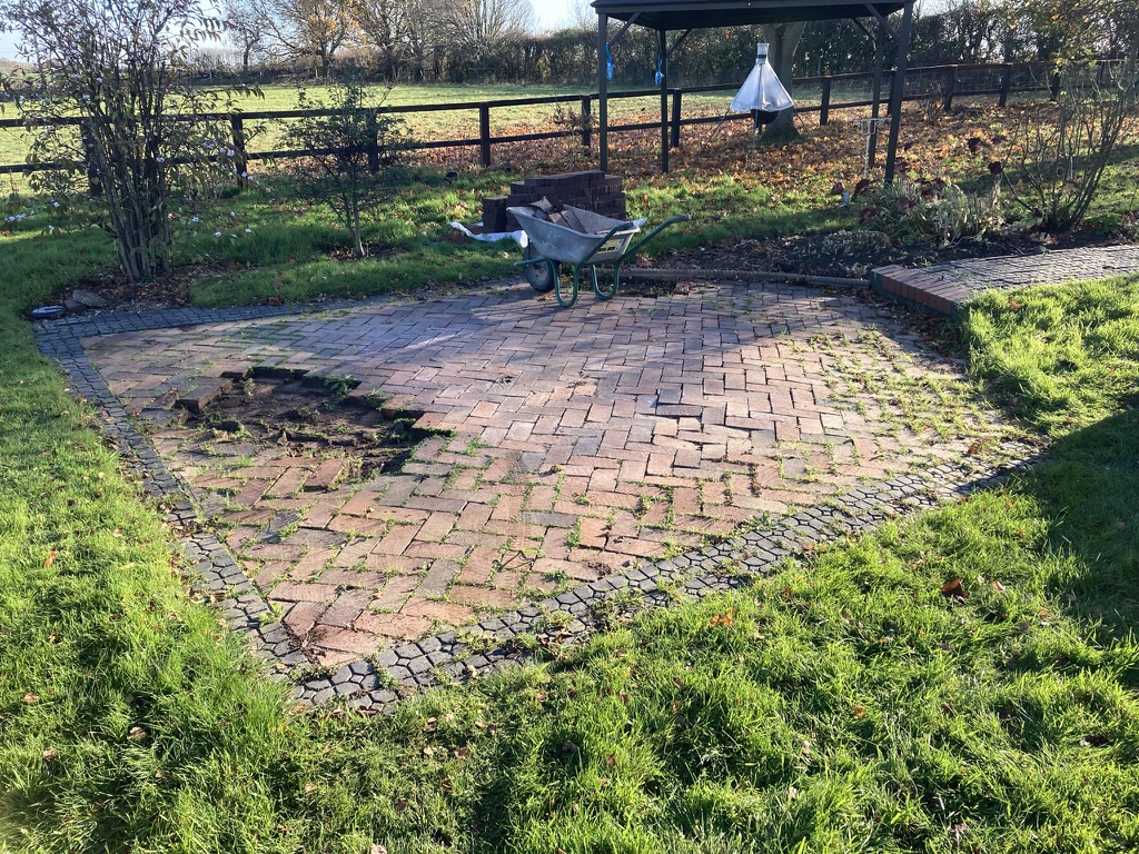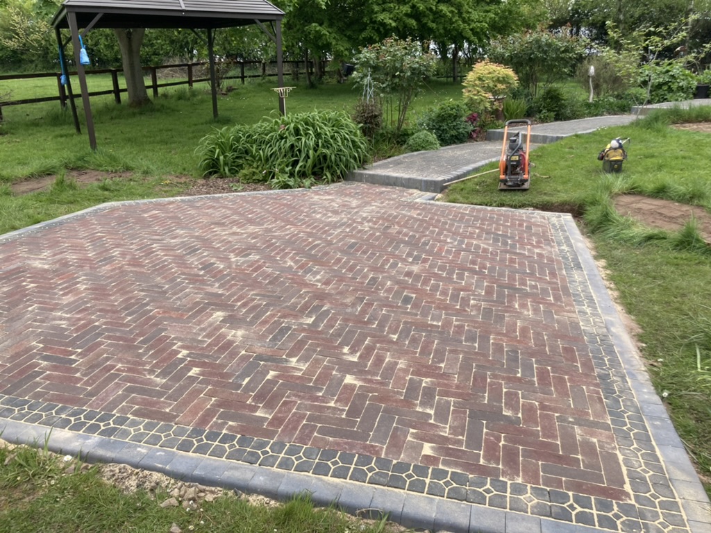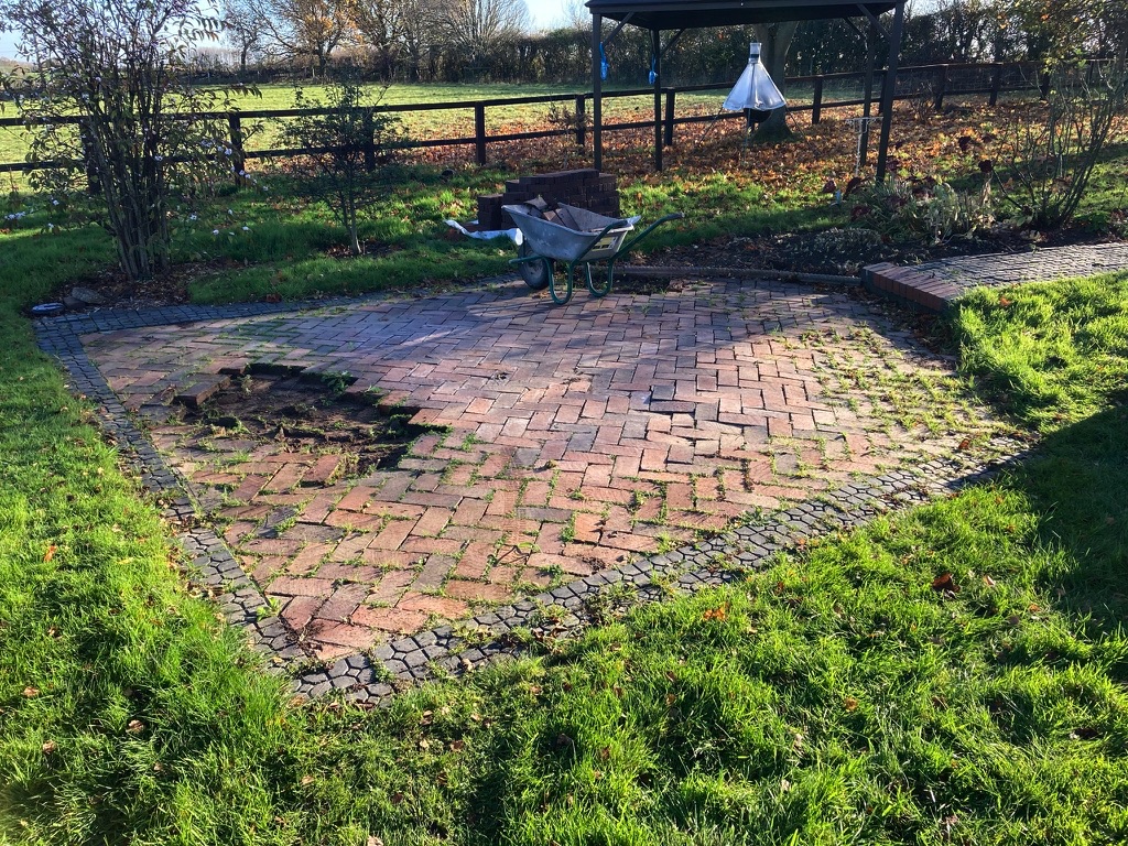 A large block paving project, removing the old path and patio area, re-excavating it putting in drainage and then new, clay block paving