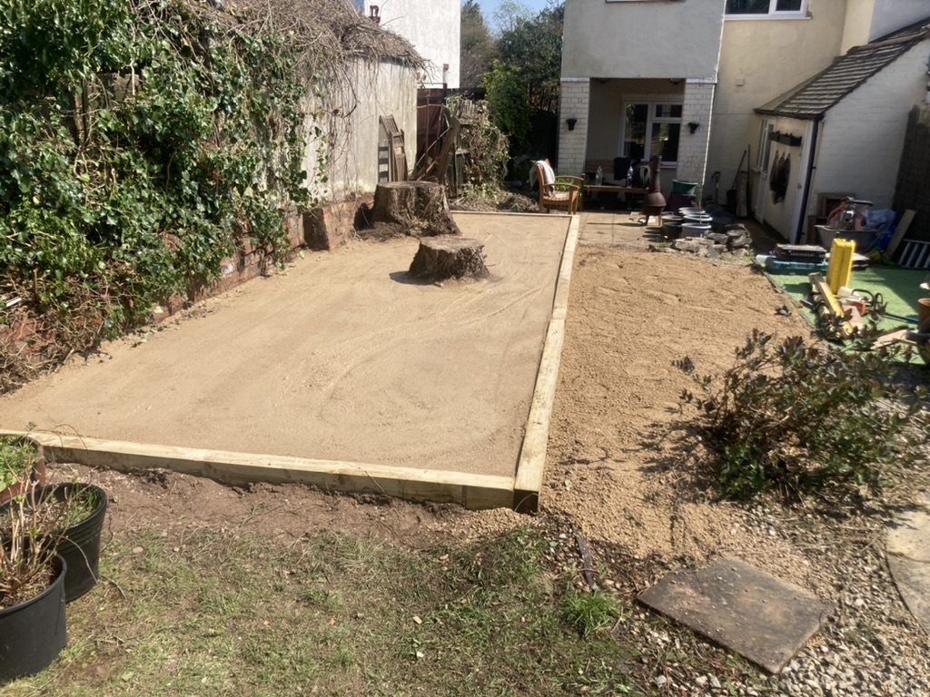 More new garden building bases constructed - within +/-5mm tolerance across the length to the garden building suppliers recommendation