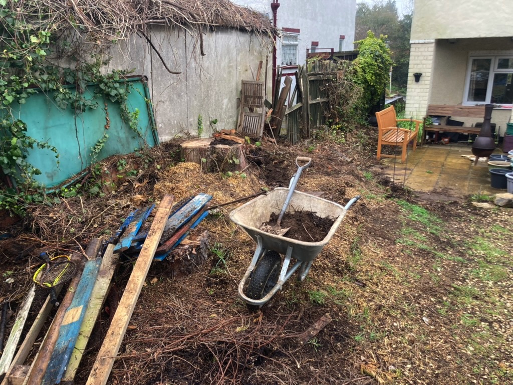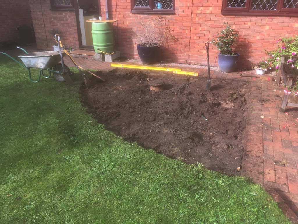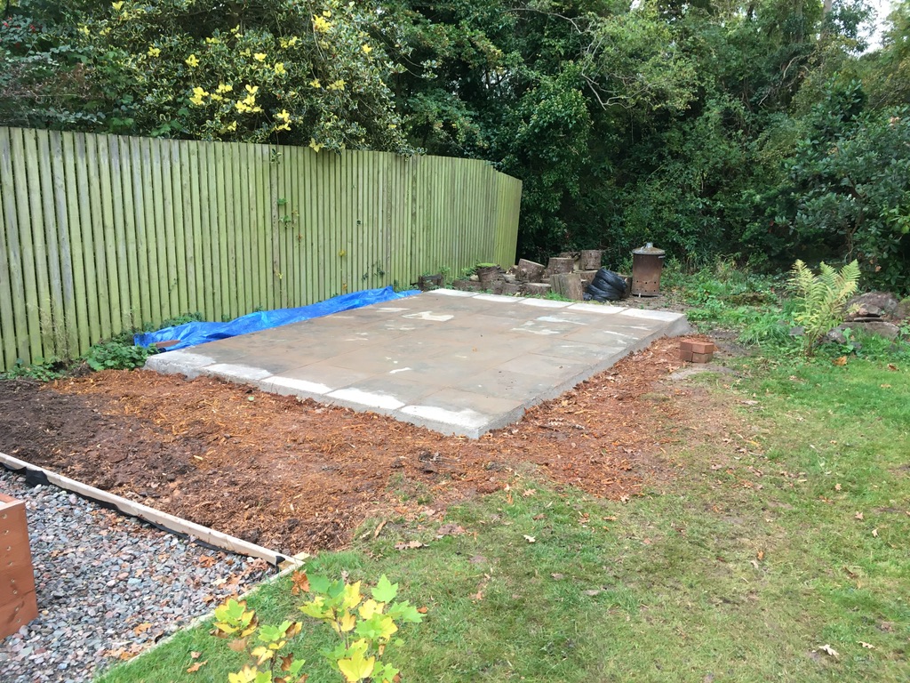 We removed a large garden outbuilding, excavated and laid the proper foundation for a new garden building